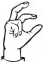 На ћирилици написано ЗОРАН РУЧНОВ састоји се из 11 слова [?]. Исписано ћириличном једноручном азбуком за глувонеме: